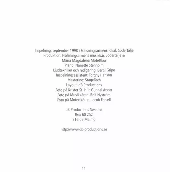 | Interpret | Alexander Hanson | Krister St Hill | Ragnar Bohlin | Maria Magdalena Motettkör | Frälsningsarméns Musikkår |