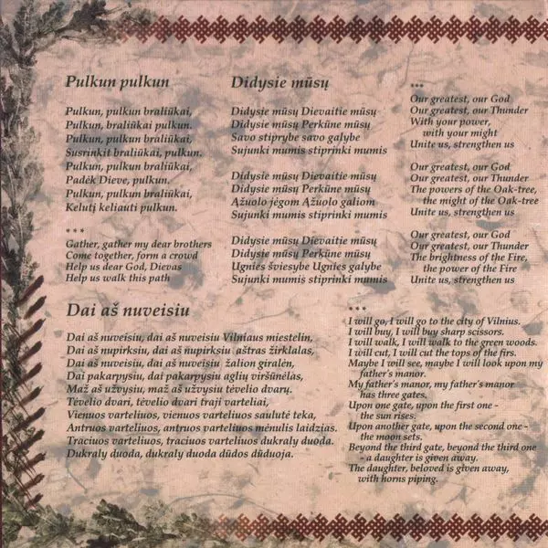 | Názov | Perkūno Giesmės (Hymns to Perkūnas The Thundergod) |