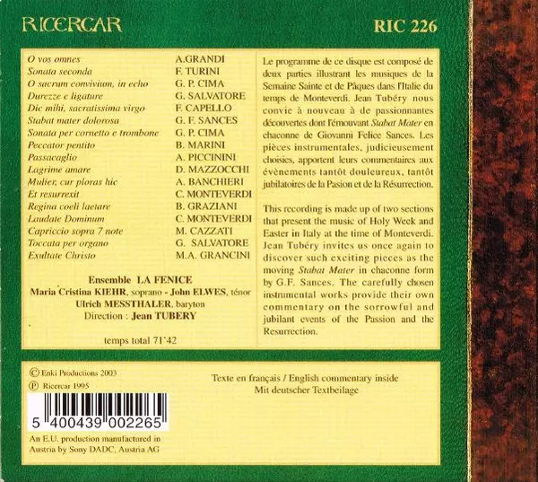 Ensemble La Fenice: Per La Settimana Santa verzia na CD v štandardný edícii. Toto konkrétne vydanie vyšlo v Evropě vo vydavateľstve Ricercar dňa 1. júna 2006. Album zasahuje do žánrov Klasická hudba, Baroková hudba a Renaissance.