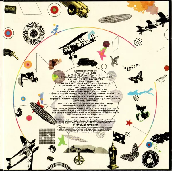 Led Zeppelin III is an album released in 1970. It is one of the band's most popular albums. The album has a very folk-rock feel. Many of the songs on the album are based on acoustic tracks. This album is also the first album to feature John Paul Jones on organ.