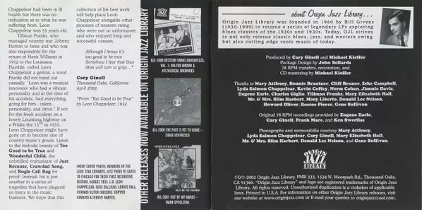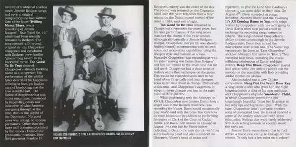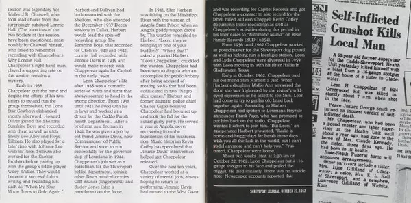 | Bass No Artist | Fiddle Lonnie Hall | Fiddle [Lead Fiddle] J.R. Chatwell | Guitar, Lead Vocals Leon Chappelear | Piano Archie Laurent | Tenor Banjo Howard Oliver | |||