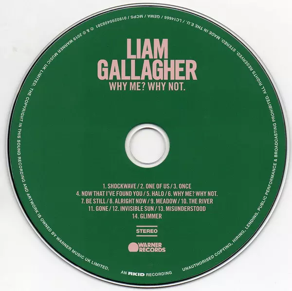 Je čas: druhá sólová platňa Liama Gallaghera je v štartovacích blokoch na rok 2019. "Why Me? Prečo nie?". je názov nového albumu britského speváka, hudobníka, bývalého člena skupiny Oasis a frontmana kapely Beady Eye. Len pred dvoma rokmi vydal mladší z bratov Gallagherovcov svoj sólový debut "As You Were", ktorý sa dostal na prvé miesto britskej hitparády. O rok neskôr začal pracovať na knihe Why Me? Prečo nie?". Rovnako ako v prípade predchádzajúceho albumu sa o produkciu postarali Greg Kurstin (Adele, Foo Fighters) a Andrew Wyatt (Mark Ronson, Lady Gaga, Bruno Mars). Na albume sa objavil aj špeciálny hosť: Gallagherov syn Gene hrá na bongo v piesni "One Of Us". So singlami "Shockwave" a "The River" priniesla ikona britpopu už dve ochutnávky "Why Me? Prečo nie?". A tie ukazujú, že Liam tentoraz vsádza na tvrdšie a ostrejšie tóny. A dokonale mu to sedí. Kto sa chce presvedčiť na vlastné uši, môže si nový album Liama Gallaghera objednať online. Na štandardnom CD sa nachádza jedenásť skladieb. Deluxe edícia obsahuje 14 skladieb. Fanúšikovia vinylov sa potešia klasickej čiernej LP platni alebo limitovanej indie exkluzivite na "Coke Bottle Green Vinyl". K dispozícii je aj obrazový disk exkluzívne pre jpc.