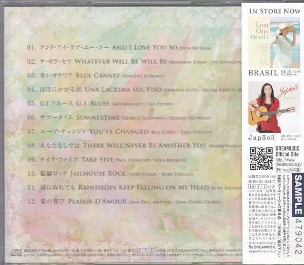 Lisa Ono: My Favorite Songs verzia na CD v štandardný edícii. Toto konkrétne vydanie vyšlo v Japonsku vo vydavateľstve Dreamusic dňa 1. júla 2015. Album zasahuje do žánrov Pop, Jazz, Kayōkyoku, Smooth Jazz a Bossa Nova.