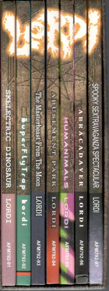 LORDI pestuje na každom albume jeden žáner: hard rock, disco, progresívny rock, heavy metal, AOR, thrash/speed metal & industrial metal Obsahuje albumyS Skelectric Dinosaur Superflytrap The Masterbeast From The Moon Abusement Park Humanimals Abracadaver Spooky Sextravaganza Spectacular Líder kapely, pán Lordi, vysvetľuje: "V priebehu týždňa po z...
