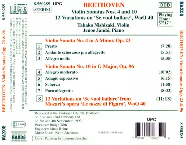 | Názov | Violin Sonatas: No. 4, Op. 23; No. 10, Op. 96 / 12 Variations On 'Se Vuol Ballare' From 'Le Nozze Di Figaro', Wo0 40 |