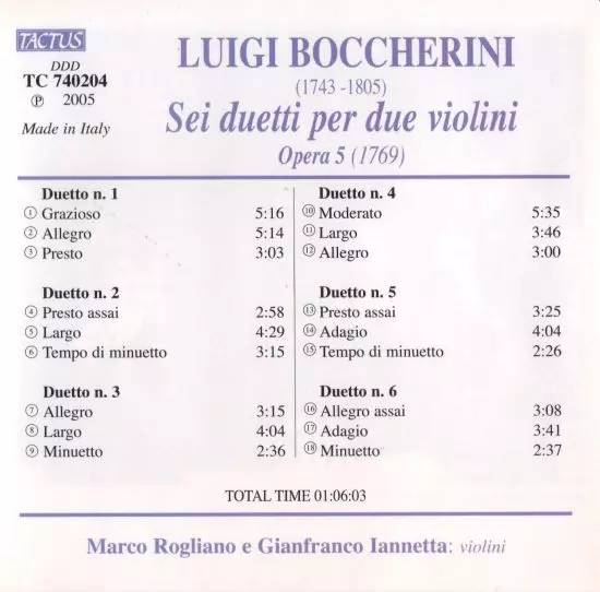 | Interpret | Luigi Boccherini | Marco Rogliano | Gianfranco Iannetta |