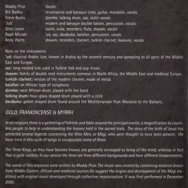 | Názov | Gold, Frankincense & Myrrh |