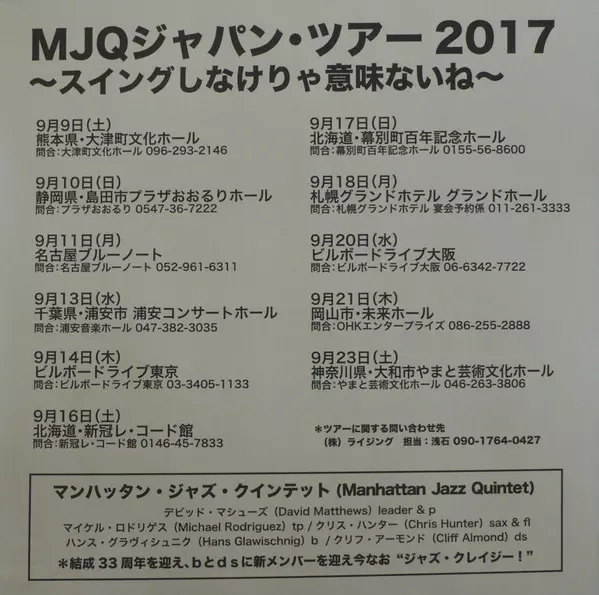 | Interpret | Dave Matthews | Hans Glawischnig | Manhattan Jazz Quintet | Michael Rodriguez | Chris Hunter | Cliff Almond |