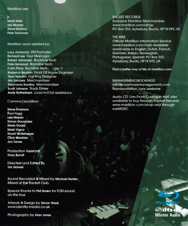Marillion: Live From Cadogan Hall verzia na Blu-ray v štandardný edícii. Toto konkrétne vydanie vyšlo v Německu vo vydavateľstve Ear Music v spolupráci s Racket Records (2) a Toward Infinity dňa 5. apríla 2011.