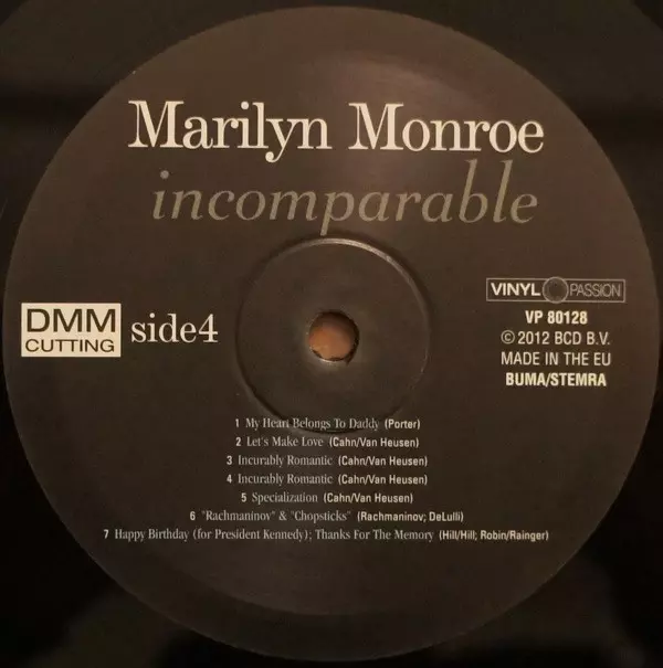 Marilyn Monroe: Incomparable verzia na vinylu 2LP v remasterované edícii. Toto konkrétne vydanie vyšlo v Evropě vo vydavateľstve Vinyl Passion dňa 21. augusta 2012.