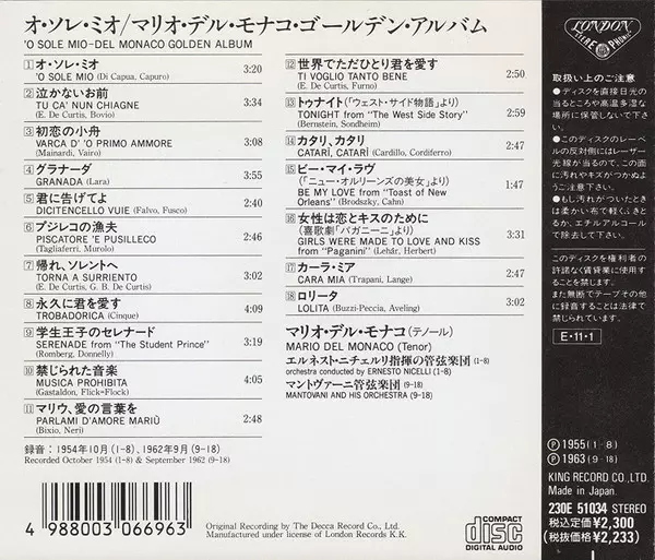 | Interpret | Mario del Monaco | Mantovani And His Orchestra | Ernesto Nicelli |