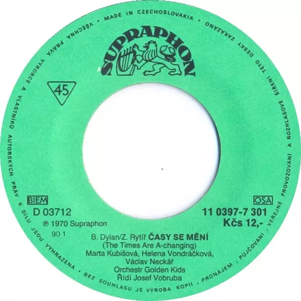 | Conductor [Řídí] Josef Vobruba | Lyrics By [Czech] Zdeněk Rytíř | Orchestra Orchestr Golden Kids | Written-By Bob Dylan | |||