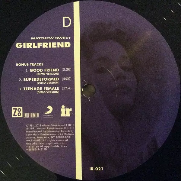 Matthew Sweet: Girlfriend verzia na vinylu 2LP v remasterované edícii. Toto konkrétne vydanie vyšlo v USA vo vydavateľstve Intervention Records v spolupráci s Zoo Entertainment a Sony Music Commercial Music Group dňa 18. januára 2019. Album zasahuje do žánrov Rock, Indie Rock a Pop Rock. 180g Gatefold Vinyl.