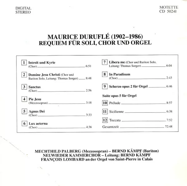 | Interpret | Maurice Duruflé | Francois Lombard | Mechthild Palberg | Bernd Kämpf | Neuwieder Kammerchor |
