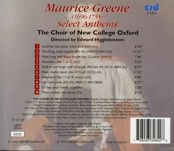 | Interpret | The New College Oxford Choir | Edward Higginbottom | Maurice Greene |