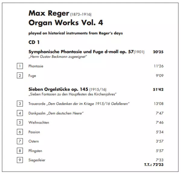 | Sieben Orgelstücke Op. 145 (Sieben Fantasien Zu Den Hauptfesten Des Kirchenjahres) | 51:42 min | |