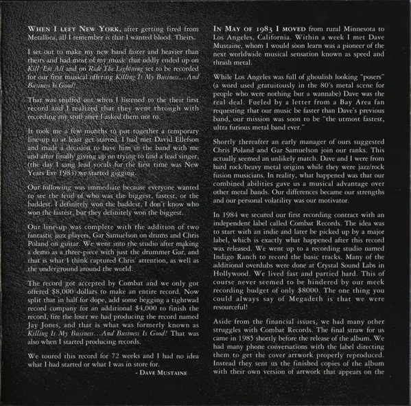 Megadeth's debut was undoubtedly their cheesiest, most intense, fastest, angriest and overall thrashiest album they've ever released. Killing Is My Business was originally released in 1985 on Combat Records. A deluxe edition, completely remixed and remastered, with new artwork and several bonus tracks, was released in 2002 by Loud Records. From ...