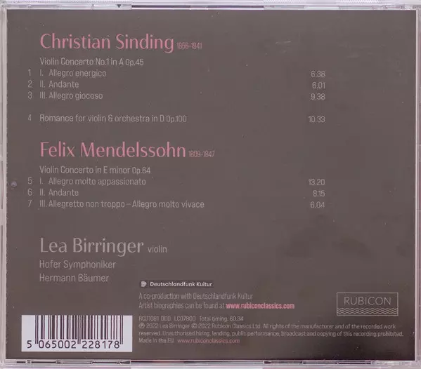 Interpret | Felix Mendelssohn-Bartholdy | Christian Sinding | Lea Birringer | Hofer Symphoniker |