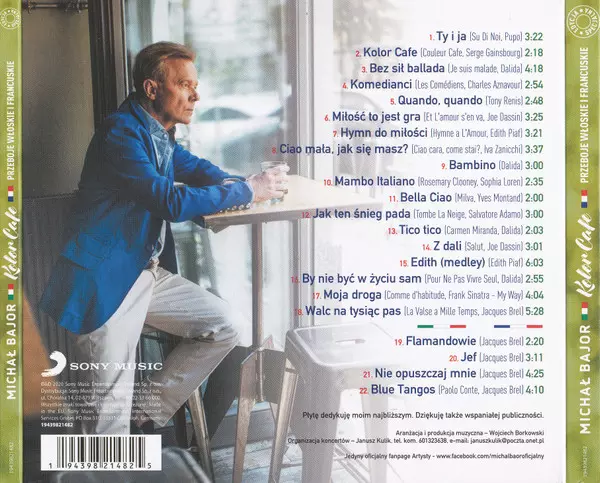 Michał Bajor: Kolor Cafe. Przeboje Włoskie I Francuskie verzia na CD v štandardný edícii. Toto konkrétne vydanie vyšlo v Polsko vo vydavateľstve Sony Music dňa 19. marca 2021. Album možno zaradiť do žánru Pop.