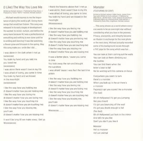 | Backing Vocals James Porte, Michael Jackson | Engineer [Assistant Engineer On The Rap] Zachariah Redding | Engineer [Recording Assistant] Quentin Gilkey | Engineer [Recording] Drew Harris, Glen Marchese, Joe Corcoran, Khaliq Glover, Khaliq-O-Vision, Luis Navarro (2), Scott Elgin, Stuart Brawley | Lyrics By [Rap] Curtis Jackson | Mixed By Jean-Marie Horvat, Teddy Riley | Musician Cameron Stone, Eddie Cascio, Joe Corcoran, Orianthi, Rudy Bird, Sharon Jackson, Stuart Brawley | Producer Angelikson, Michael Jackson, Teddy Riley | Programmed By, Other [Finisher] Teddy Riley | Rap 50 Cent | Voice [Kids Scream] Naiden Maynard, Nigel Maynard | Written-By Eddie Cascio, James Porte, Michael Jackson | |||