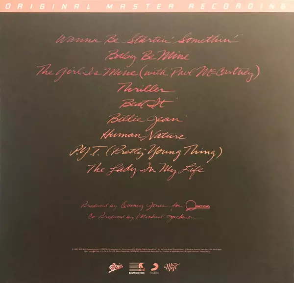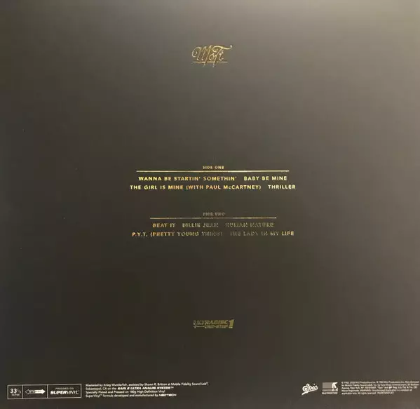 Michael Jackson: Thriller LTD | NUM verzia na vinylu LP v limitované individuálne číslované remasterované edícii. Toto konkrétne vydanie vyšlo v USA vo vydavateľstve Mobile Fidelity Sound Lab v spolupráci s Epic a MJJ Productions dňa 25. novembra 2022.