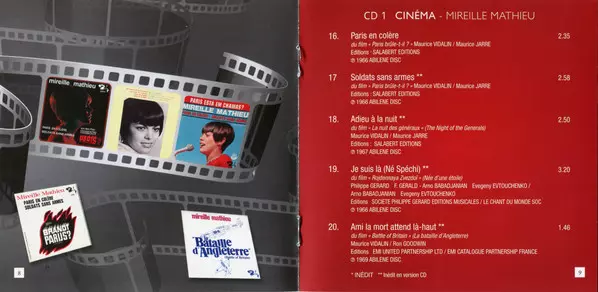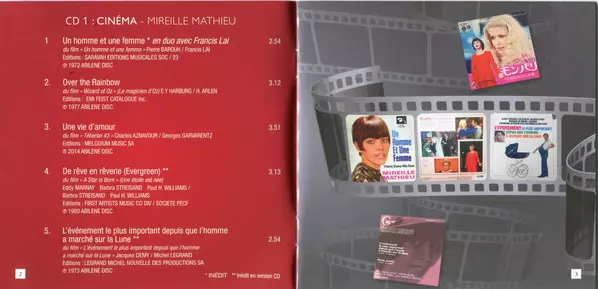 Na tomto dvojalbume spieva neprekonateľná Mireille Mathieu niektoré z najznámejších a najobľúbenejších filmových melódií z Hollywoodu a jej rodného, filmového Francúzska. 40 piesní, z toho 17 doteraz nevydaných, od filmových klasík ako "Odviate vetrom" a "Čarodejník z krajiny Oz" až po "Love Story", "Krstný otec" a "Muž a žena", ktoré skomponova...