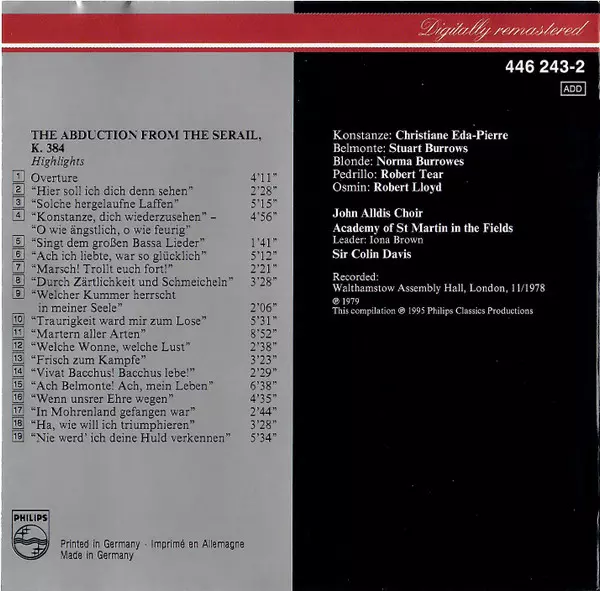 | Interpret | Wolfgang Amadeus Mozart | The Academy Of St. Martin-in-the-Fields | Sir Colin Davis | Robert Tear | Robert Lloyd | John Alldis Choir | Stuart Burrows | Christiane Eda-Pierre | Norma Burrowes |