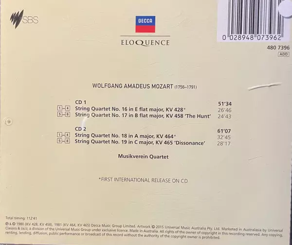 | Názov | String Quartets KV.428, KV 458, KV 464, KV 465 |