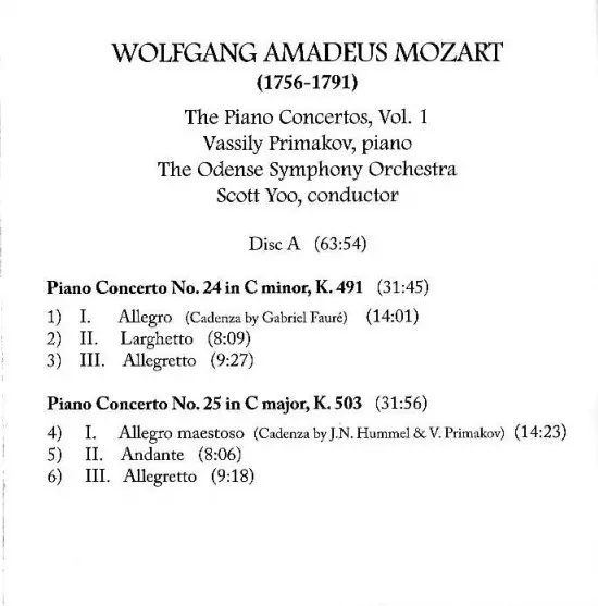 | Piano Concerto No. 25 in C Major, K. 503 | 31:56 min | |