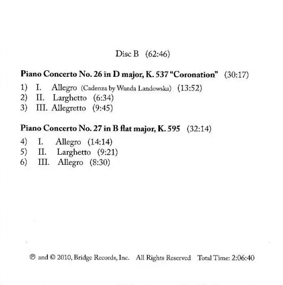 | Piano Concerto No. 27 In B Flat Major, K. 595 | 32:14 min |