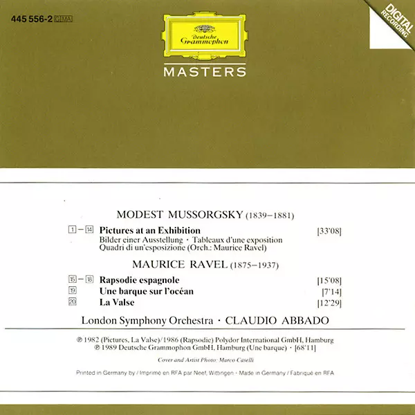 | Interpret | The London Symphony Orchestra | Maurice Ravel | Claudio Abbado | Modest Mussorgsky |