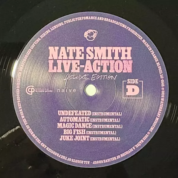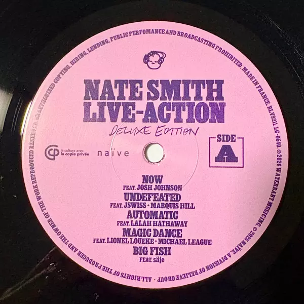 Nate Smith: Live-Action (Deluxe Edition) verzia na vinylu 2LP v štandardný edícii. Toto konkrétne vydanie vyšlo v Evropě vo vydavateľstve Believe v spolupráci s Naïve dňa 13. februára 2026. Album možno zaradiť do žánru Jazz.