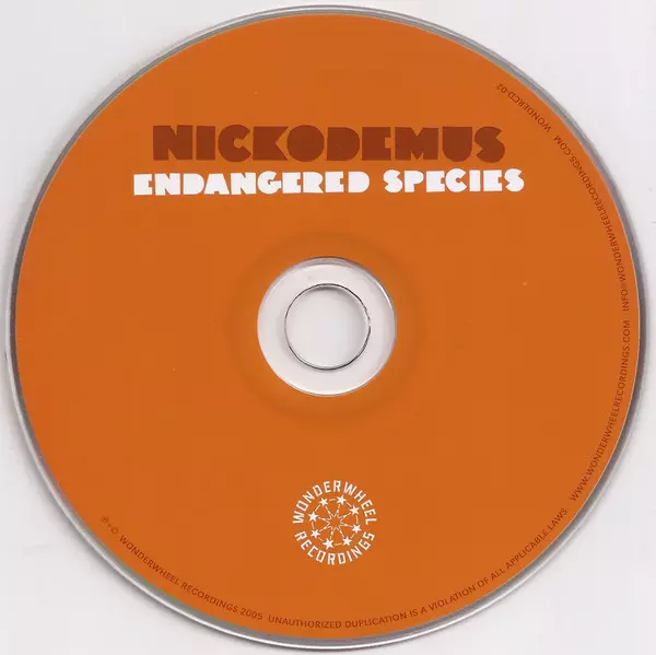 Nickodemus: Endangered Species verzia na CD v štandardný edícii. Toto konkrétne vydanie vyšlo v USA vo vydavateľstve Wonderwheel Recordings dňa 19. mája 2016. Album zasahuje do žánrov Elektronická hudba, Funk / Soul, Hip Hop, Downtempo a Trip Hop.