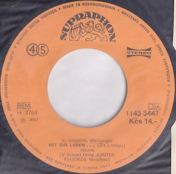 Nicole: Song For The World (Píseň Pro Svět) / Mit Dir Leben... (Žít S Tebou) verzia na vinylu SP v 45 RPM edícii. Toto konkrétne vydanie vyšlo v Československu vo vydavateľstve Supraphon roka 1987. Album zasahuje do žánrov Pop a Šláger.