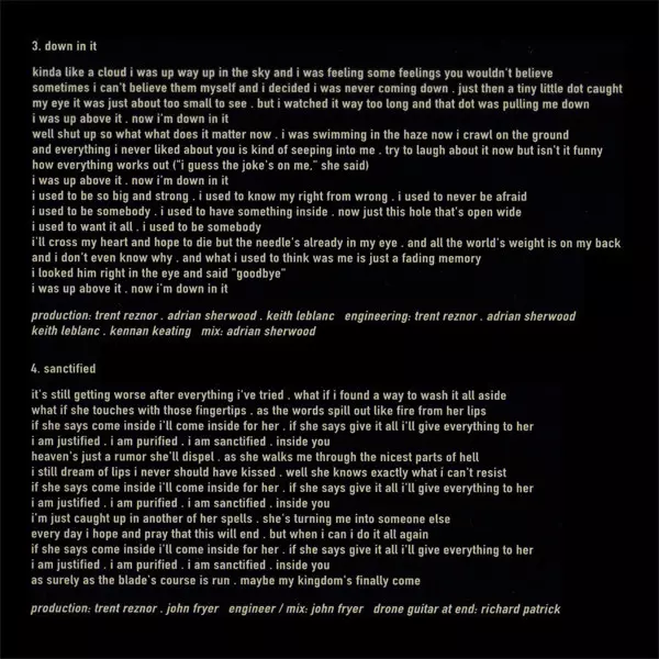 Engineer [Engineering] Doug DeAngelis, Flood, John Fryer | Mixed By [Mix] John Fryer, Trent Reznor | Producer [Production] Flood, Trent Reznor | Programmed By [Additional Synth Programming] Flood, Tim Niemi