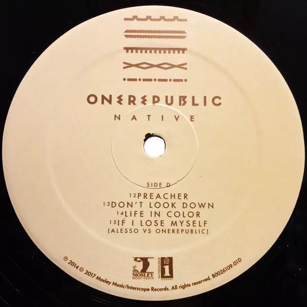OneRepublic: Native verzia na vinylu 2LP v štandardný edícii. Toto konkrétne vydanie vyšlo v USA vo vydavateľstve Mosley Music Group v spolupráci s Interscope Records dňa 23. júna 2017.