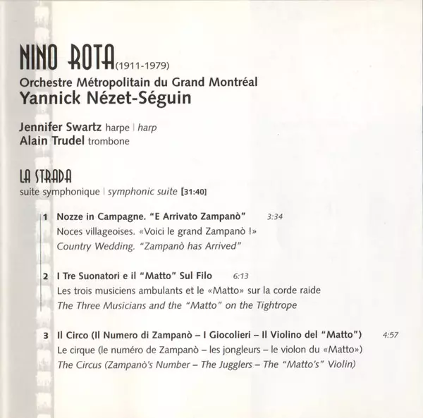 | Interpret | Nino Rota | Yannick Nézet-Séguin | Orchestre Métropolitain du Grand Montréal | Alain Trudel | Jennifer Swartz |