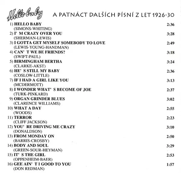 | Názov | Hello Baby (A Patnáct Dalších Písní Z Let 1926-30) |