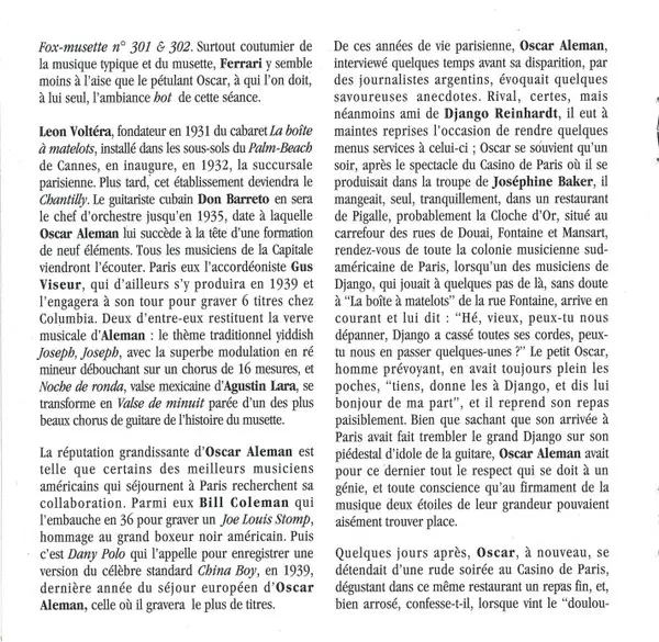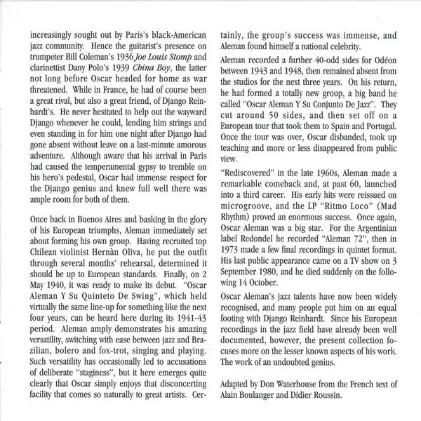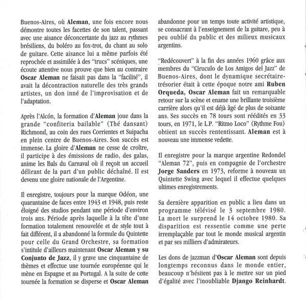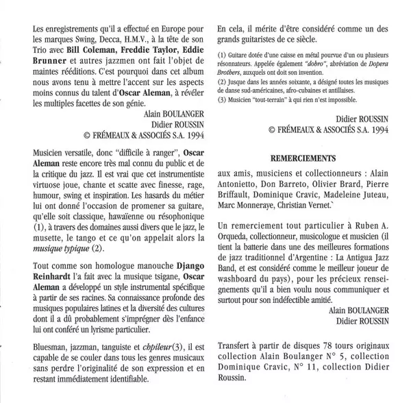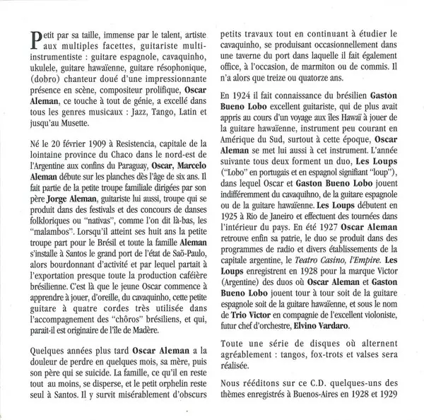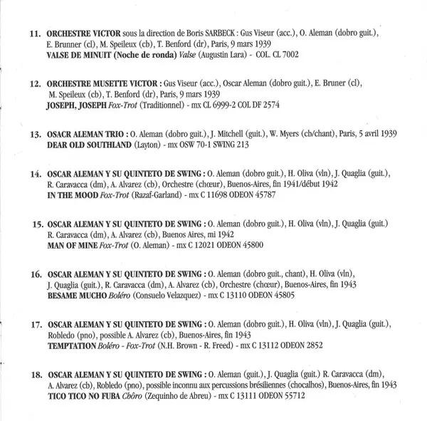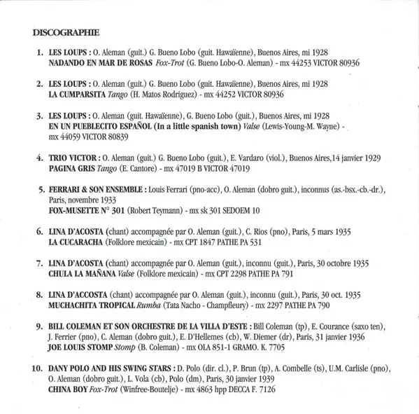 | Guitar Oscar Aleman | Lap Steel Guitar [Guitare Hawaienne] Gaston Bueno Lobo | Written-By Gaston Bueno Lobo, Oscar Aleman | |||