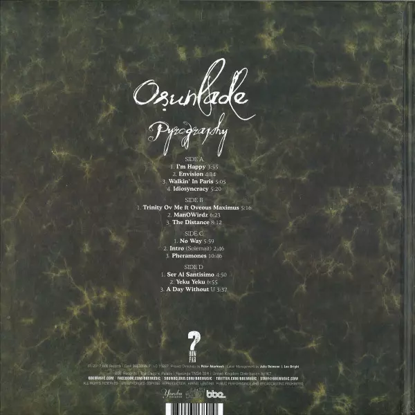 Osunlade: Pyrography DLX verzia na vinylu 2LP v deluxe edícii. Toto konkrétne vydanie vyšlo v Velké Británii vo vydavateľstve BBE v spolupráci s Yoruba Records dňa 10. marca 2017. Album zasahuje do žánrov Elektronická hudba a House. Reissue Book Vinyl Special Deluxe Art Edition.