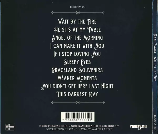 Paal Flaata: Wait By The Fire - Songs Of Chip Taylor verzia na CD v štandardný edícii. Toto konkrétne vydanie vyšlo v Norsku vo vydavateľstve Rootsy v spolupráci s NorskAmerikaner dňa 3. februára 2017. Album možno zaradiť do žánru Rock.