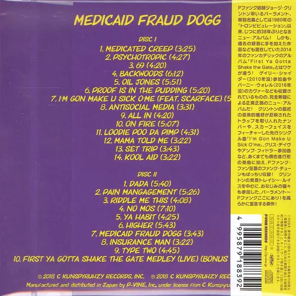 Parliament: Medicaid Fraud Dogg DIGI verzia na 2CD v digisleeve edícii. Toto konkrétne vydanie vyšlo v Japonsku vo vydavateľstve P-Vine Records dňa 21. septembra 2018. Album zasahuje do žánrov Funk / Soul a P.Funk.