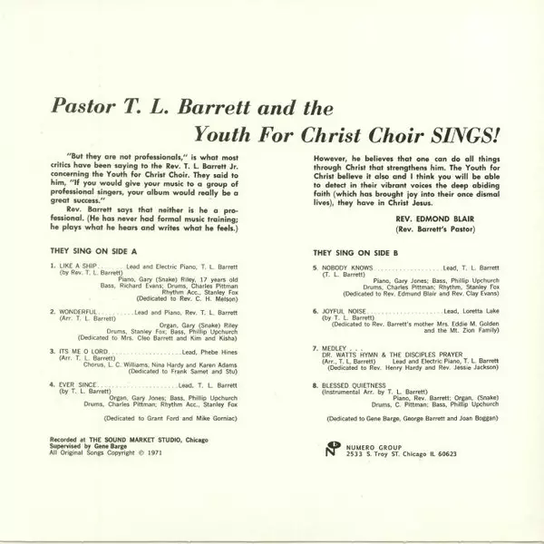 | Interpret | Pastor T. L. Barrett | The Youth For Christ Choir |