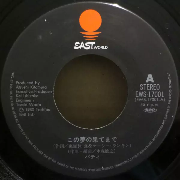 Patty: Yesterday Is Gone = この夢の果てまで verzia na vinylu SP v 45 RPM edícii. Toto konkrétne vydanie vyšlo v Japonsku vo vydavateľstve Eastworld roka 1980. Album zasahuje do žánrov Pop, Stage & Screen, Kayōkyoku a Theme.