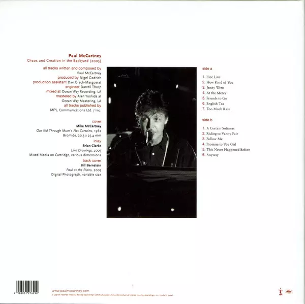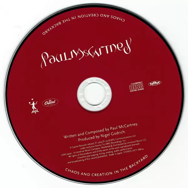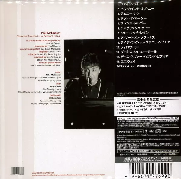 Paul McCartney: Chaos And Creation In The Backyard LTD verzia na CD v limitované edícii. Toto konkrétne vydanie vyšlo v Japonsku vo vydavateľstve Capitol Records v spolupráci s MPL (2) dňa 18. mája 2018.