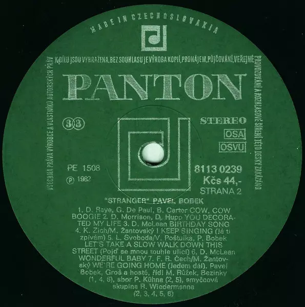 Pavel Bobek: The Stranger verzia na vinylu LP v štandardný edícii. Toto konkrétne vydanie vyšlo v Československu vo vydavateľstve Panton roka 1983. Album zasahuje do žánrov Folk, World, & Country, Country a Československá klasika. Green Labels Vinyl.