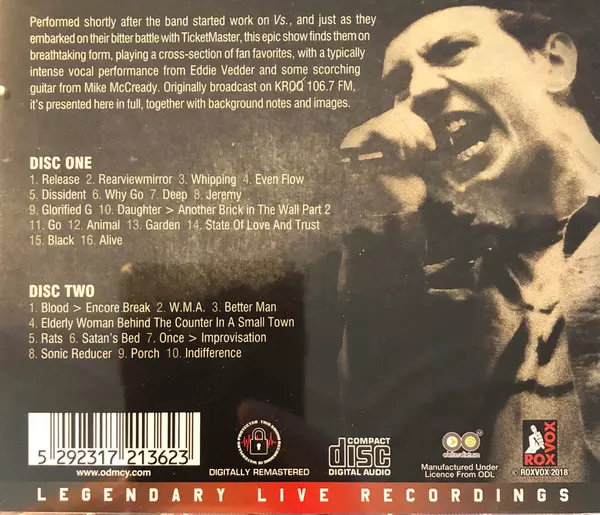 Pearl Jam: Fox Theatre Atlanta GA 3rd April '94 verzia na 2CD v štandardný edícii. Toto konkrétne vydanie vyšlo v Evropě, USA a Kanadě vo vydavateľstve Rox Vox dňa 23. februára 2018. Album zasahuje do žánrov Rock, Alternatívny rock a Grunge.