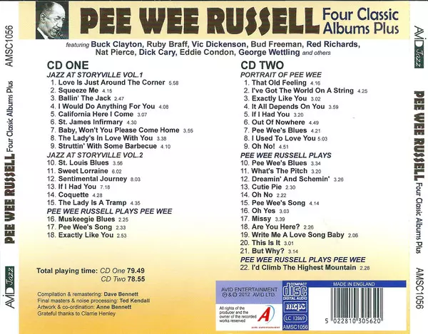 Pee Wee Russell: Four Classic Albums Plus verzia na 2CD v remasterované edícii. Toto konkrétne vydanie vyšlo v Velké Británii vo vydavateľstve Avid Jazz v spolupráci s Avid Entertainment dňa 7. augusta 2019. Album zasahuje do žánrov Jazz a Dixieland.