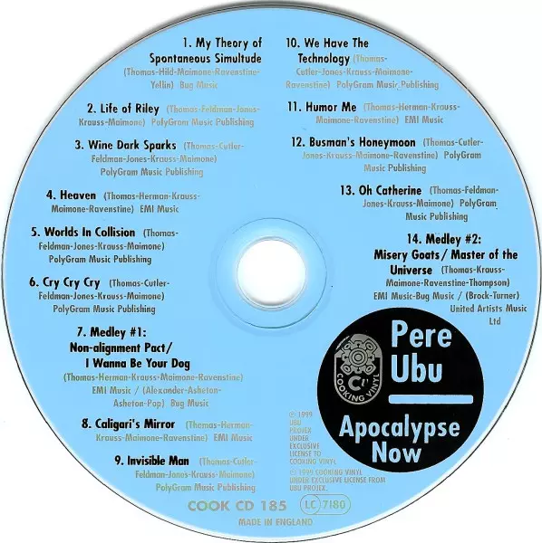 Pere Ubu: Apocalypse Now verzia na CD v štandardný edícii. Toto konkrétne vydanie vyšlo v Velké Británii vo vydavateľstve Cooking Vinyl dňa 4. marca 2008. Album zasahuje do žánrov Rock a Art Rock.