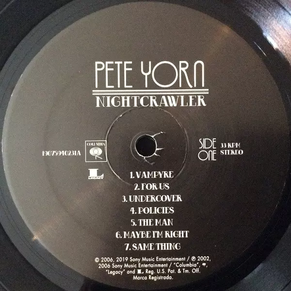 Pete Yorn: Nightcrawler verzia na vinylu LP v štandardný edícii. Toto konkrétne vydanie vyšlo v USA vo vydavateľstve Columbia v spolupráci s Legacy dňa 17. mája 2019. Album zasahuje do žánrov Rock, Pop a Alternatívny rock.
